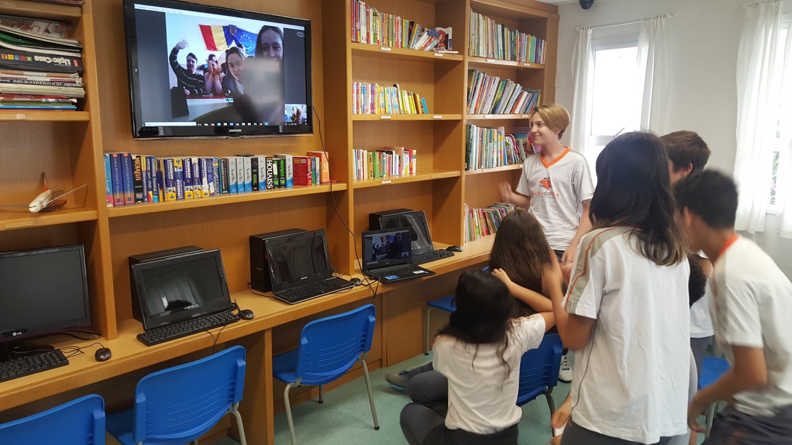 Desta vez a interação foi entre os alunos do 8º ano da Escola do Max com alunos do colégio Apostol D. Culea, localizado em Suditi-Co Lalomita, uma cidade próxima a Bucareste, na Romênia. A videoconferência trouxe aprendizados únicos, de questões diversas como o clima ou esportes favoritos, até curiosidades sobre a língua materna e tradições de cada povo.
